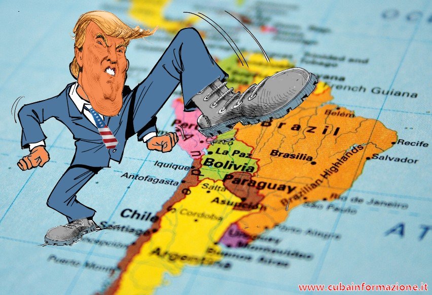 Lo scontro aperto con Russia, Cina ed altri Paesi emergenti, vede la Casa Bianca guidata dai nazi-evangelici perdere posizioni sullo scacchiere globale. Pur centrato sul dominio dell’area, il golpismo statunitense in America Latina s’inserisce in un riposizionamento globale ed è un tentativo di risposta alla sua crisi di leadership planetaria; Trump puntella il “giardino di casa” per meglio attrezzarsi nella guerra per la supremazia globale. Distribuisce a 75 paesi sanzioni unilaterali, armi con le quali Washington tenta di costruirsi vantaggi commerciali e forza politica per riequilibrare a suo favore uno scontro per il dominio futuro che appare già compromesso. A ciò ha cercato di rispondere spingendosi all’offensiva contro l’America Latina, sia per arroccarsi economicamente e politicamente, sia per dispiegare sul terreno ideologico una guerra che dichiara voler condurre contro i paesi socialisti latinoamericani ma che ha anche nel contenimento di Russia e Cina il suo contesto strategico.