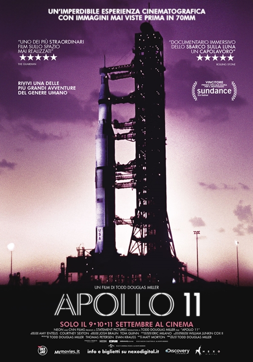 Un appuntamento al cinema per ricordare lo sbarco sulla Luna, quello andato in scena dal 9 all’11 settembre scorsi, con Apollo 11. La pellicola, firmata dal regista Todd Douglas Miller, è stata presentata in occasione del Sundace Festival, dove si è aggiudicata il Premio Speciale della Giuria Documentari per il Miglior Montaggio.