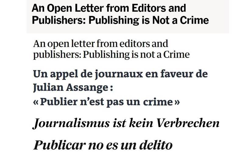 Implicito nella lettera dei cinque giornali è il fatto che la vergognosa campagna di persecuzione contro Assange serve agli Stati Uniti come esempio per scoraggiare altri giornalisti dal rivelare crimini e macchinazioni segrete come quelle smascherate da WikiLeaks negli ultimi anni. La sostanziale nettissima denuncia degli ultimi tre governi americani è opportuna e auspicabilmente utile alla risoluzione della vicenda giudiziara in corso. Rimangono tuttavia invariate le gravissime responsabilità di questi stessi giornali che solo oggi o, comunque, solo di recente hanno riconosciuto in maniera inequivocabile il ruolo di giornalista di Julian Assange, rendendo oggettivamente inaccettabile l’incriminazione del dipartimento di Giustizia USA.