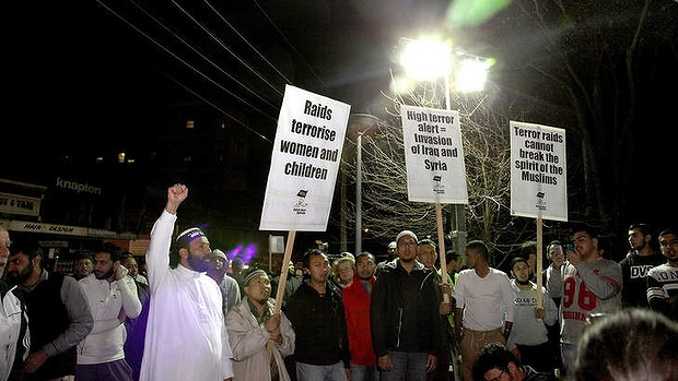 Qualcosa come 800 poliziotti e agenti del contro-spionaggio (ASIO) hanno fatto irruzione in decine di abitazioni nelle città di Sydney, Brisbane e Logan, con particolare attenzione per i residenti di fede musulmana, arrestando una quindicina di sospetti. Nelle operazioni, appoggiate da elicotteri della polizia, le forze di sicurezza non sono andate per il sottile. Almeno uno dei residenti la cui abitazione è stata perquisita ha raccontato ai media australiani di essere stato strattonato violentemente e colpito più volte dagli agenti di polizia.