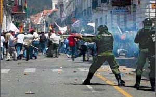 Questo è quello che succede in Bolivia come pure in Ecuador e in Cile. L’impossibilità di riformare un sistema fallito trova immediata applicazione per le strade. Gli indigeni boliviani sono falciati dalla polizia, una delle entità più corrotte dell’intera America Latina che, con l’autonominata presidente è tornata alla sua specialità storica: abbracci ai governi di destra e fuoco sulle opposizioni di sinistra in piazza. Sull’impossibilità di riconoscere come legittimo questo governo golpista si è in attesa di un pronunciamento del governo italiano. Sulla diffusione della verità circa il governo scandaloso di Quito attendiamo invece le righe dei media di riferimento governativi e dei giornalisti fedeli alla causa dei loro editori. Sarà meglio armarsi di pazienza. Tradurre dall’inglese comporta tempo.