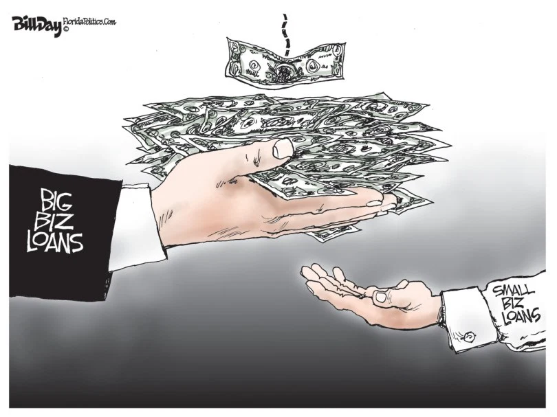 A ciò va aggiunto che il Tesoro USA ha affidato in larga misura alle grandi banche americane, come JPMorgan o Wells Fargo, la gestione dei prestiti. In questo modo, gli istituti di Wall Street hanno privilegiato le richieste di finanziamento più importanti, pari anche a 10 o 20 milioni di dollari, così da incassare commissioni più sostanziose rispetto alle pratiche di piccoli negozi o attività commerciali, anche quando queste ultime avevano precedenza per avere presentato le loro domande in anticipo.