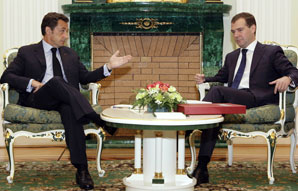 Quanto alle relazioni Mosca-Tbilisi – dopo un mese di guerre calde e fredde – c’è da rilevare che si è svolto a Mosca un summit “di lavoro” ospitato nel magnifico castello di Maindorf, presso Barvikha, alle porte della capitale. Qui il presidente francese Sarkozy, accompagnato dal presidente della commissione Europea Barroso e dall’Alto commissario per la sicurezza e la cooperazione in Europa Solana, hanno discusso con il presidente russo Medvedev e – tutti insieme – sono giunti ad alcune conclusioni: le forze russe si ritireranno completamente dal territorio georgiano entro un mese e entro il primo ottobre saranno dispiegati in Georgia almeno 200 osservatori della Ue.