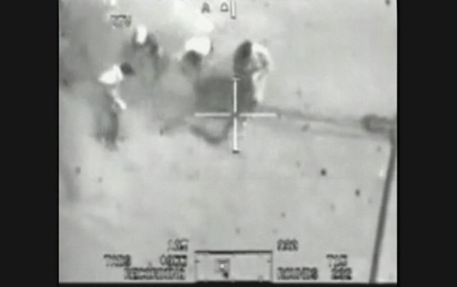 Il filmato di un quarto d’ora è stato filmato a bordo di un l’elicottero Apache dell’esercito americano, impegnato in una missione in un quartiere densamente popolato di Baghdad. Siamo nel 2007, nel pieno dell’escalation americana fortemente voluta da David Petraeus. I soldati scambiano per una cellula di militanti un gruppo di persone ferme di fronte al cancello di un’abitazione. La macchina fotografica del giornalista della Reuters viene scambiata per un lanciarazzi anticarro e i soldati chiedono subito l’autorizzazione a sparare. Entro pochi secondi, le raffiche dall’elicottero fanno terra bruciata.