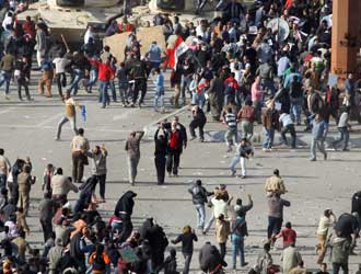 Anche ieri gli scontri stra militari e rivoltosi hanno contrassegnato le manifestazioni ormai quotidiane che chiedono la fine del regime di Mubarak. All’esercito, che aveva chiesto ai dimostranti di tornare a casa, é stato invece risposto picche: la rivolta non si ferma. L’Egitto rifiuta gli appelli ad una transizione immediata del potere: lo ha detto il portavoce del ministero degli Esteri. Gli Usa si dicono preoccupati per l’evolversi della situazione ed il segretario generale dell’Onu Ban Ki-moon definisce “inaccettabili” gli attacchi contro i manifestanti. Le pressioni internazionali sembrano quindi indicare una scarsa disponibilità a correre in aiuto del fido alleato di un tempo. L’alunno per eccellenza del FMI, alleato fedele della pax occidentale, sembra ormai fuori gioco.