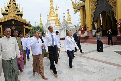Gran parte dell’attenzione mediatica per la trasferta di Obama si è concentrata sulla manciata di ore trascorse nella giornata di lunedì in Myanmar, dove l’attuale inquilino della Casa Bianca è stato il primo presidente USA in carica a mettere piede. Accolto da una folla festante, Obama ha incontrato nella capitale commerciale della ex Birmania, Yangon, il presidente Thein Sein e la leader dell’opposizione, nonché parlamentare, Daw Aung San Suu Kyi, presso la sua abitazione dove ha trascorso buona parte degli ultimi due decenni agli arresti domiciliari.