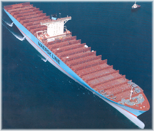 La Emma Maersk è una nave ciclopica, talmente immensa che sembra appartenere più alla fantascienza che al mondo reale: lunga 397 metri, può trasportare fino a 14.000 container alla velocità massima di 25,5 nodi (poco meno di 50 chilometri l’ora). E’ dotata di sei motori, un turbodiesel a due tempi Wärtsilä-Sulzer, alto 13,5 metri da 109.000 cavalli e cinque propulsori Caterpillar, che assieme sviluppano 40.000 cavalli. Il solo Wärtsilä-Sulzer è in grado di divorare poco meno di quattro litri di olio combustibile denso al secondo. Già, perché le super-navi utilizzano lo scarto della produzione di petrolio, “praticamente quello che resta dopo che tutti i combustibili più leggeri sono stati estratti dal greggio.