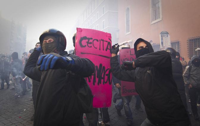 Cento feriti rispondono a un bollettino di guerra e non ai numeri di una manifestazione: l’opinione pubblica, nella sua confortante ignoranza, potrebbe ribaltare il suo giudizio e negare quella naturale simpatia che spetta a dei giovani pieni di voglia di partecipazione e sacrosante rivendicazioni. Le cronache raccontano come ieri in mattinata le casalinghe del centro romano si sporgessero dai balconi per gridare la loro solidarietà ai manifestanti, mentre nella serata bersagliassero le stesse persone di insulti per i disagi arrecati.
