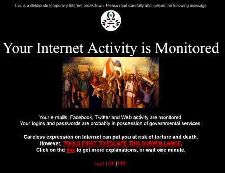A metà agosto, quindi, chiunque si è collegato alla Rete da una delle 5.000 postazioni hackerate, al posto della home page ha visto una pagina bianca con un curioso simbolo (una omega nel quale è inscritta una stella, sopra un triangolo circondato da fulmini) contenente il seguente messaggio: “questa temporanea interruzione del servizio internet è deliberata. Vi preghiamo di leggere attentamente e di diffondere il seguente messaggio: il vostro traffico internet è monitorato.” Seguiva un manuale che spiegava agli utenti come dotarsi di software gratuito di criptaggio (Tor o TrueCrypt) al fine di eludere sorveglianza e/o la censura di stato.