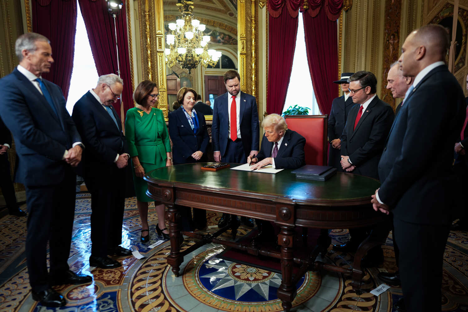 La cerimonia si è svolta per la prima volta dal 1985 all’interno della Rotonda del Campidoglio a Washington, una decisione presa a causa delle rigide temperature invernali nella capitale americana. La location ha tristemente ricordato gli eventi del 6 gennaio del 2021, quando proprio qui si stava per consumare il tentato golpe di Trump per impedire la certificazione della vittoria di Joe Biden.